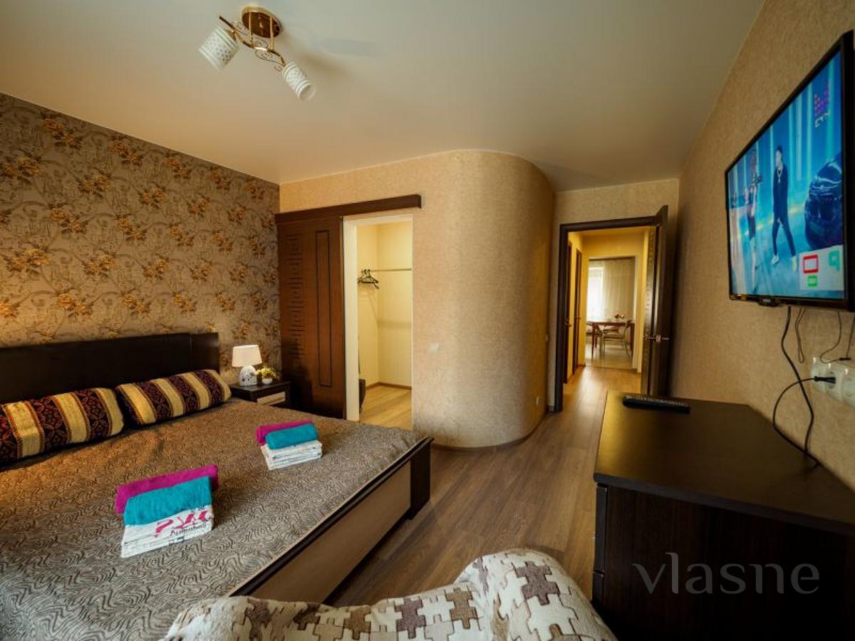 Large, comfortable, stylish two-room apartment with good European-quality renovation in a new building. New apartment, bright stylish interior and convenient location. Large double bed, two large double sofas, six sleeping places. An LCD TV and unlimited Internet will help you spend your leisure time.