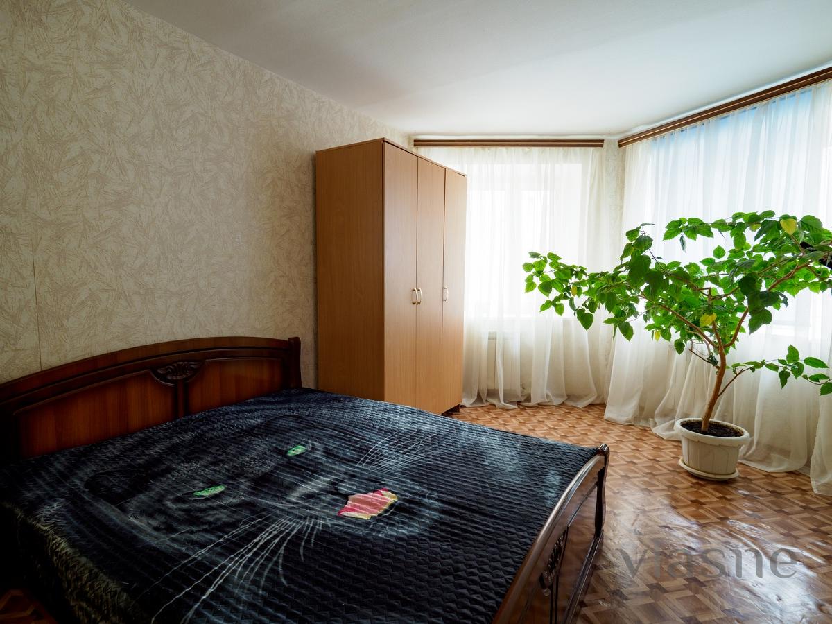Cozy, stylish one-room apartment with good European-quality renovation in a new building. New apartment, cozy stylish interior and good location. Large double bed, large double sofa, sleeps four. An LCD TV and unlimited Internet will help you spend your leisure time. Check out time: 12.00 noon. Documents confirming accommodation: hotel standard reporting documents with receipts and a QR code in the cash register receipt.