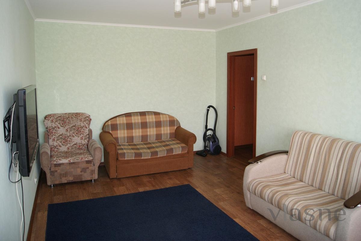 There is everything for a comfortable prozhivaniya- plastic windows with soundproof, comfortable beds, wardrobe, washing machine, plasma TV, microwave, wi-fi, fridge, electric kettle, tableware. The price includes bed linen, toiletries, towels .. For guests with private car parking is available in the yard. Suitable for family holidays and business trips. Accounting documents of any form. Friendly neighbors! Price for a day-1300, from 10-1100, 21-1000 more. Call us at any time convenient for you! Wide range of apartments in any area of the city !!!