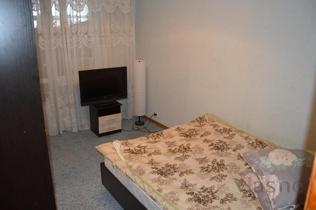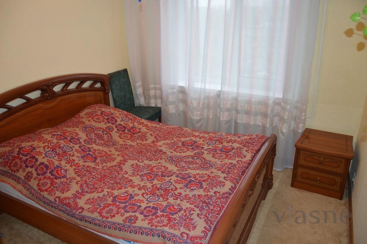 Rent an excellent two-bedroom kvartiru- bright and cozy nights. House located on the street Torch socialism lived near the city center. In walking distance is a supermarket, cafe, restaurant, beauty salon, cinema, fitness center, market, dentistry, ice rink, Parks. The apartment is fully Furnished. There is everything for a comfortable prozhivaniya- plastic windows with soundproof, comfortable beds, wardrobe, washing machine, plasma TV, microwave, wi-fi, fridge, electric kettle, tableware.