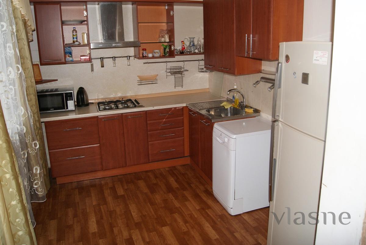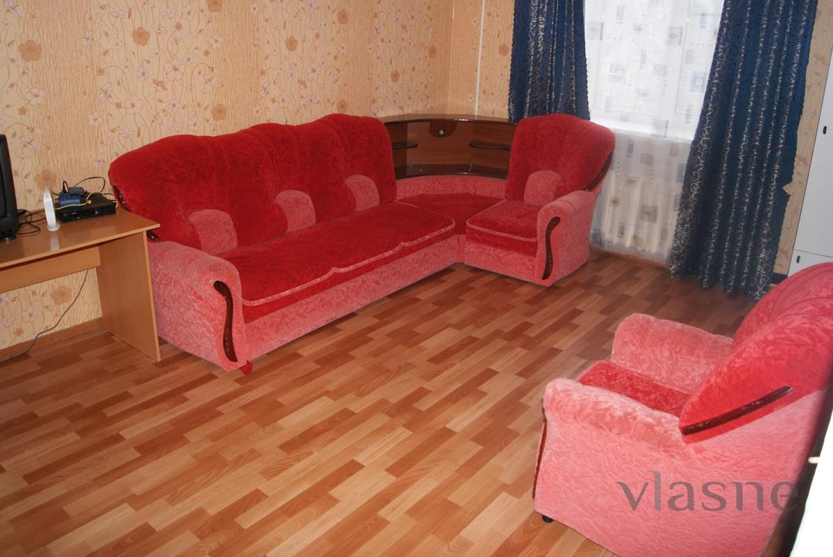 Rent an excellent three-bedroom apartment - bright and cozy nights. Luxury house is located on Lenin street lived near the center. In walking distance is a supermarket, cafe, restaurant, beauty salon, cinema, fitness center, market, dentistry, ice rink, Parks. The apartment is fully Furnished. There is everything for a comfortable prozhivaniya- plastic windows with soundproof, comfortable beds, wardrobe, washing machine, plasma TV, microwave, wi-fi, fridge, electric kettle, tableware.