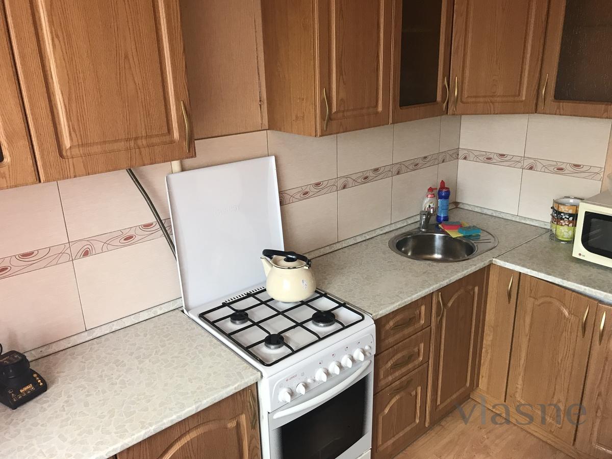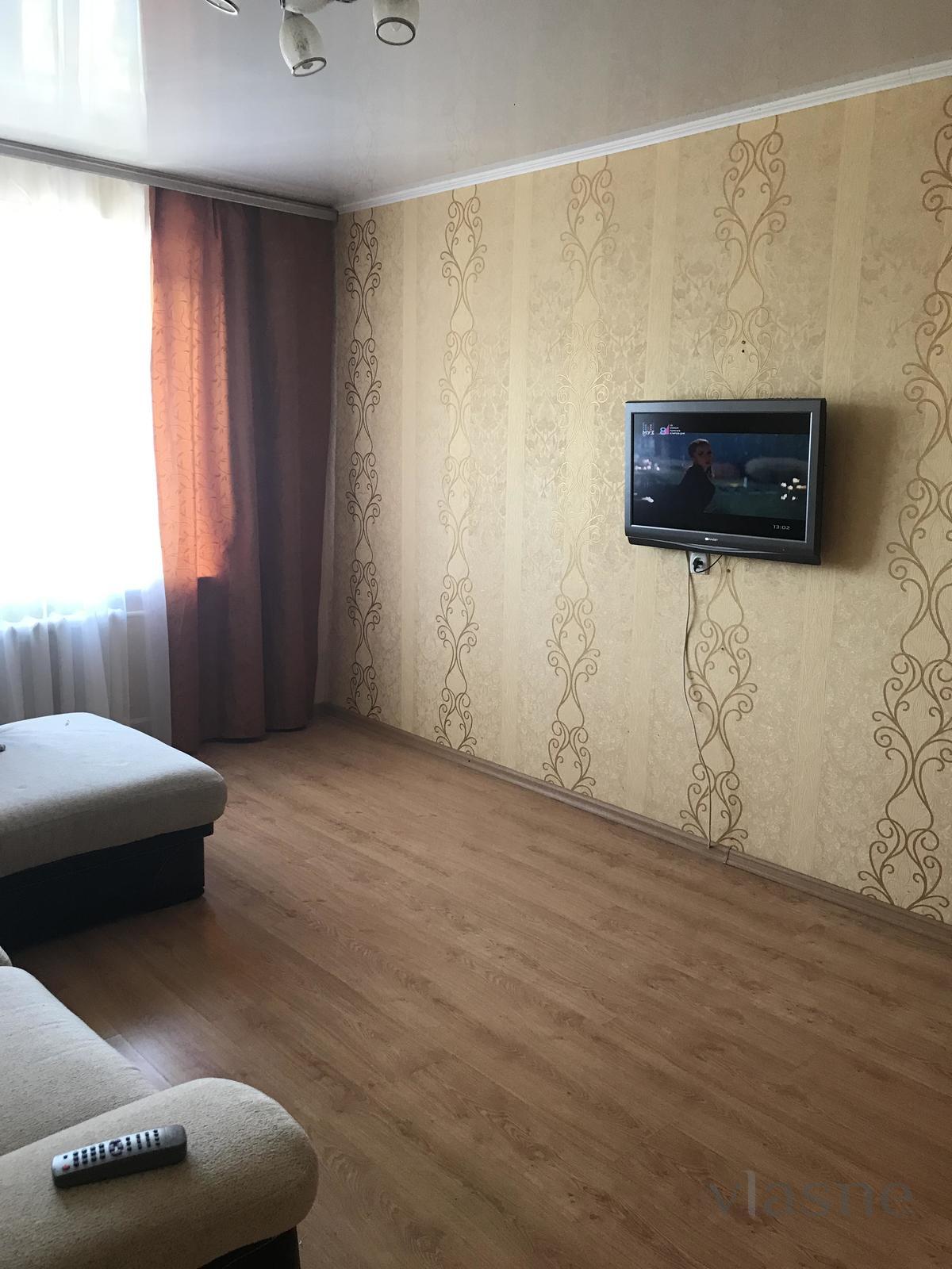 Rent an excellent two-bedroom apartment, bright and comfortable for rent. The house is on Sverlov Street. In walking distance there is a supermarket,, a forest park area. The apartment is fully furnished. There is everything for a comfortable stay, plastic windows with sound insulation, comfortable beds, wardrobe, washing machine, plasma TV, microwave, wi-fi, refrigerator, electric kettle, dishes.