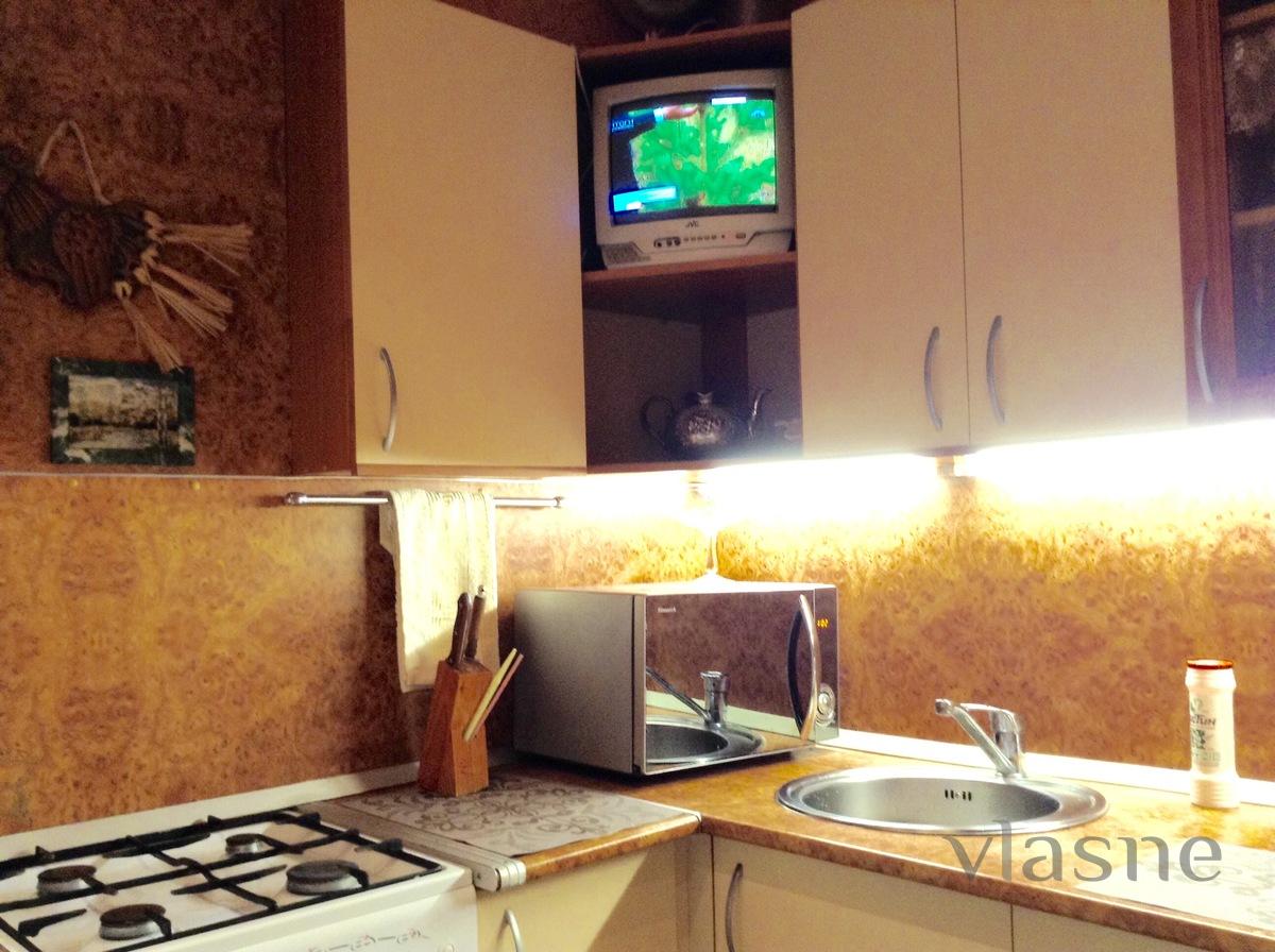 Welcome to the cozy three-room apartment with a good European-quality repair. Supermarket and stops within walking distance. Photos are real! The apartment has all rooms with separate passages, two balconies and a large corridor. Light and warm rooms will allow you to have a good rest after a hard day! Each room has a TV and a bed with an orthopedic mattress - ironed and always clean bedding.