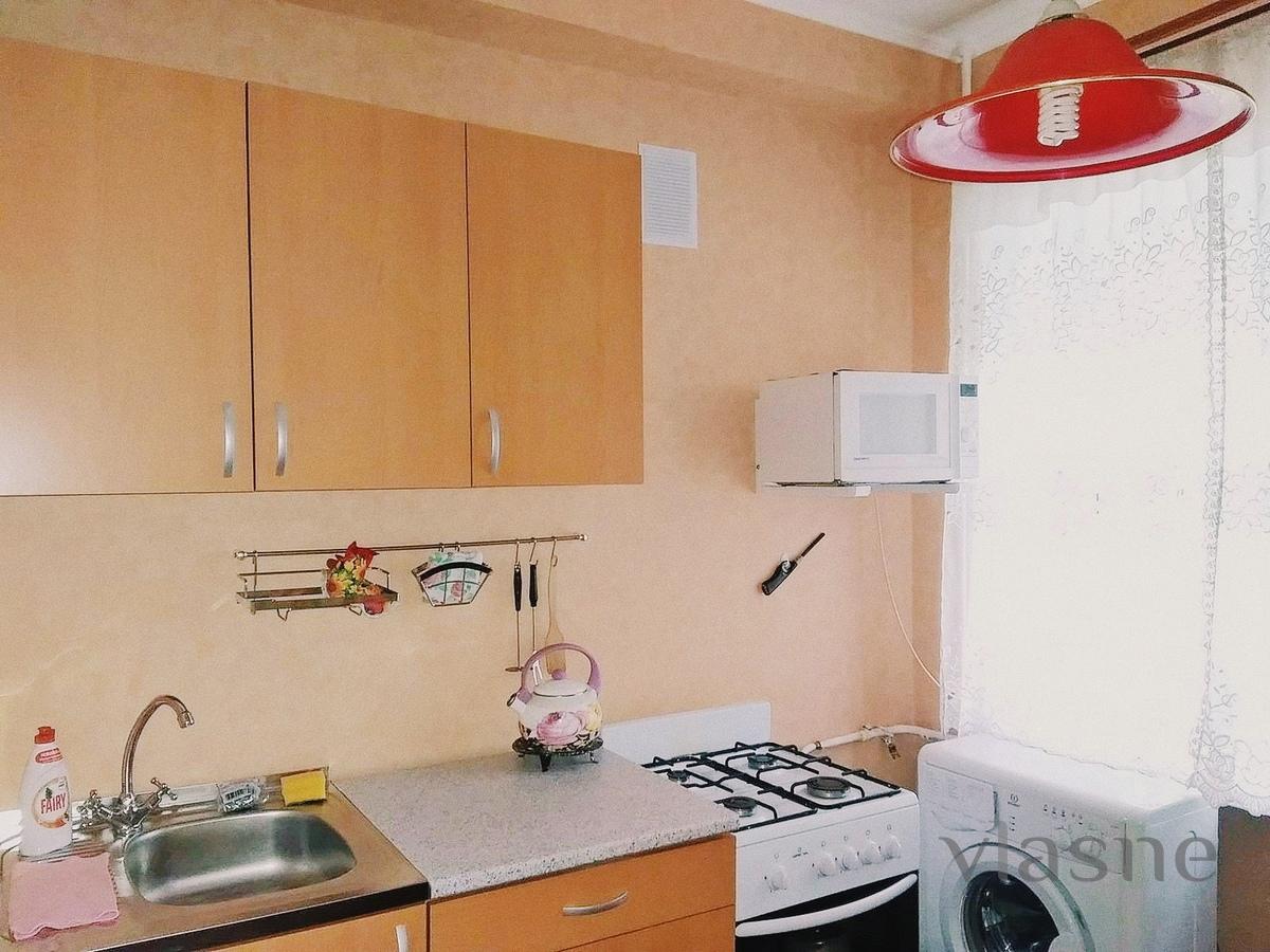 Cozy, clean apartment in a quiet area of the city with a well-developed infrastructure. Equipped with all necessary equipment. Bed linen and dishes are also provided. C / u lined, cable TV, internet. Nearby a shop, a cafe, various shopping centers, a fitness club. There is parking near the house. Good transport interchange.