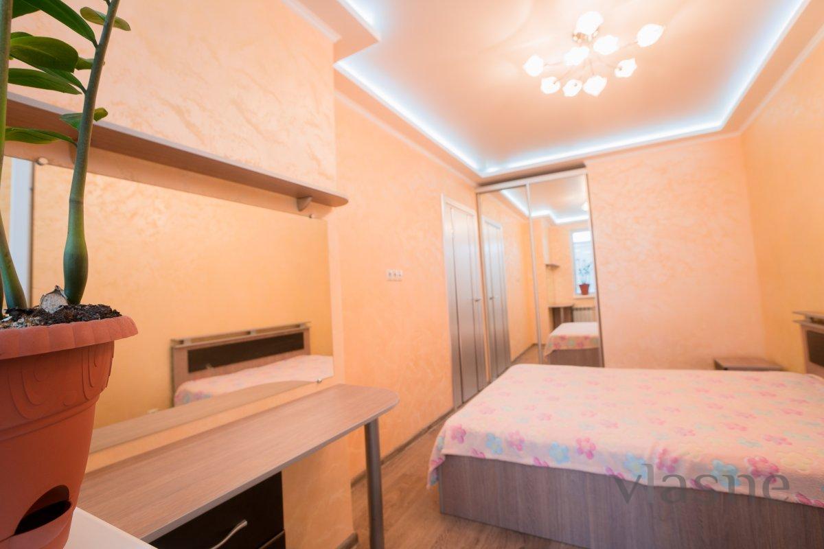 Furniture and other facilities: Bedroom set, big sofa, wardrobe, desk, sofa, kitchen. 2 separate dressing rooms. Electric, water heater, metal door, telephone, microwave oven, electric kettle, DVD player, iron and ironing board, hair dryer, crockery and accessories, protected area, TV with cable TV, bedding, cleaning the apartment.