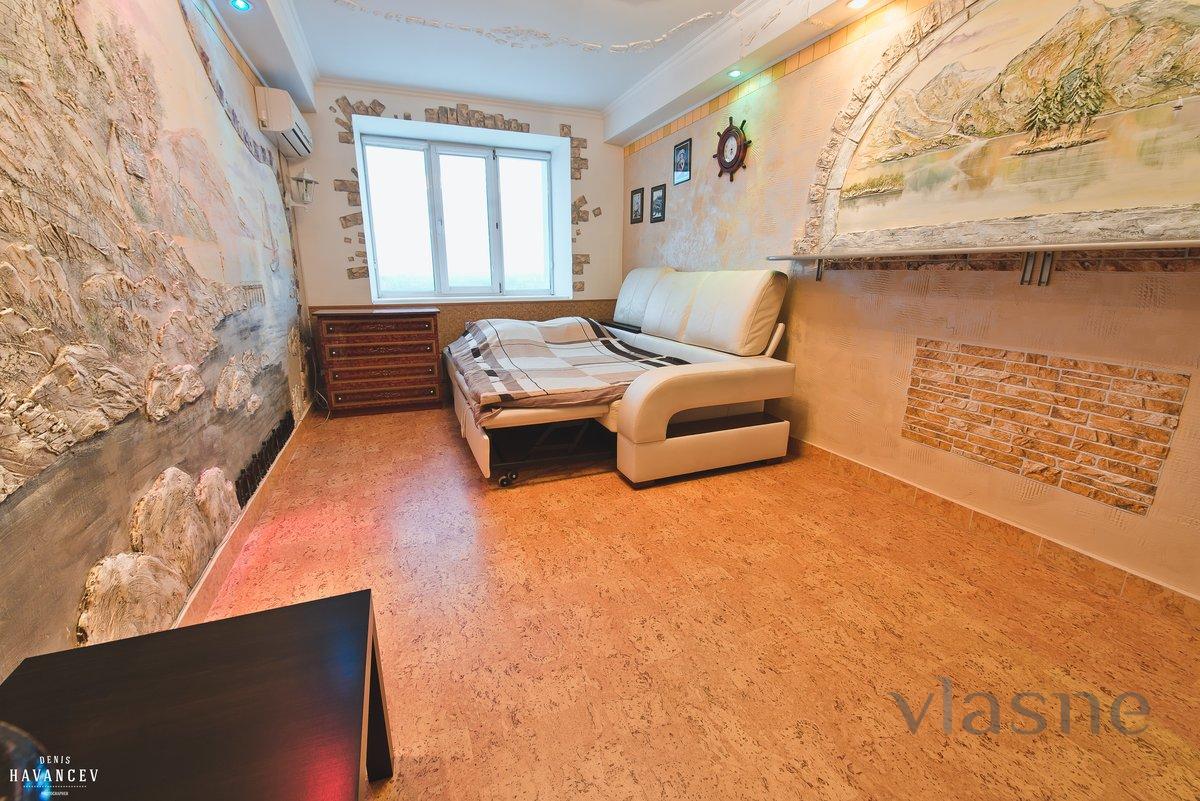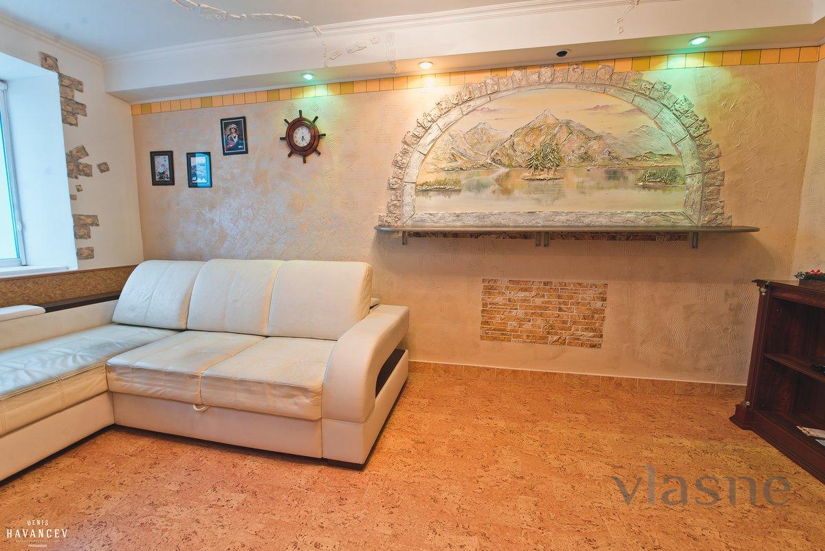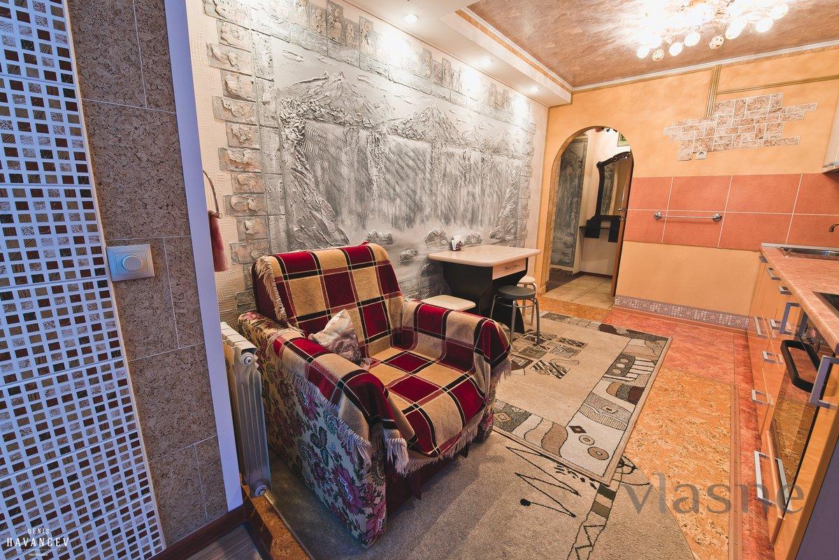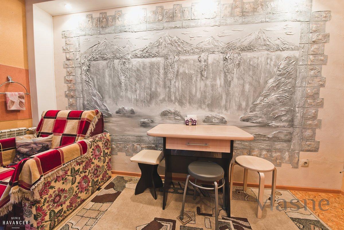 Folding leather sofa, folding chair, dining table, coffee table, dresser, nightstand, a library, 3 stools and a dressing room. Electric, metal door, microwave oven, electric kettle, iron and ironing board, hair dryer, crockery and accessories, protected area, TV with cable TV, bedding, cleaning, transfer from airport / railway station.