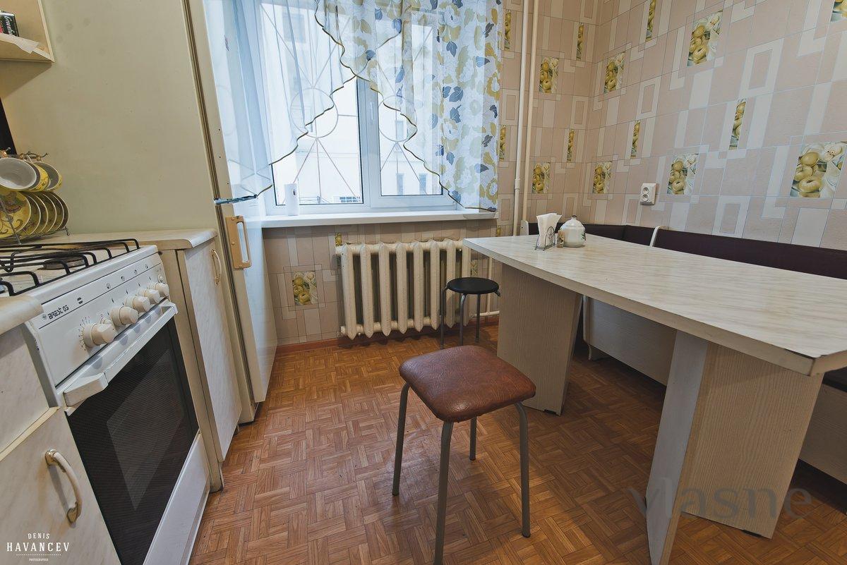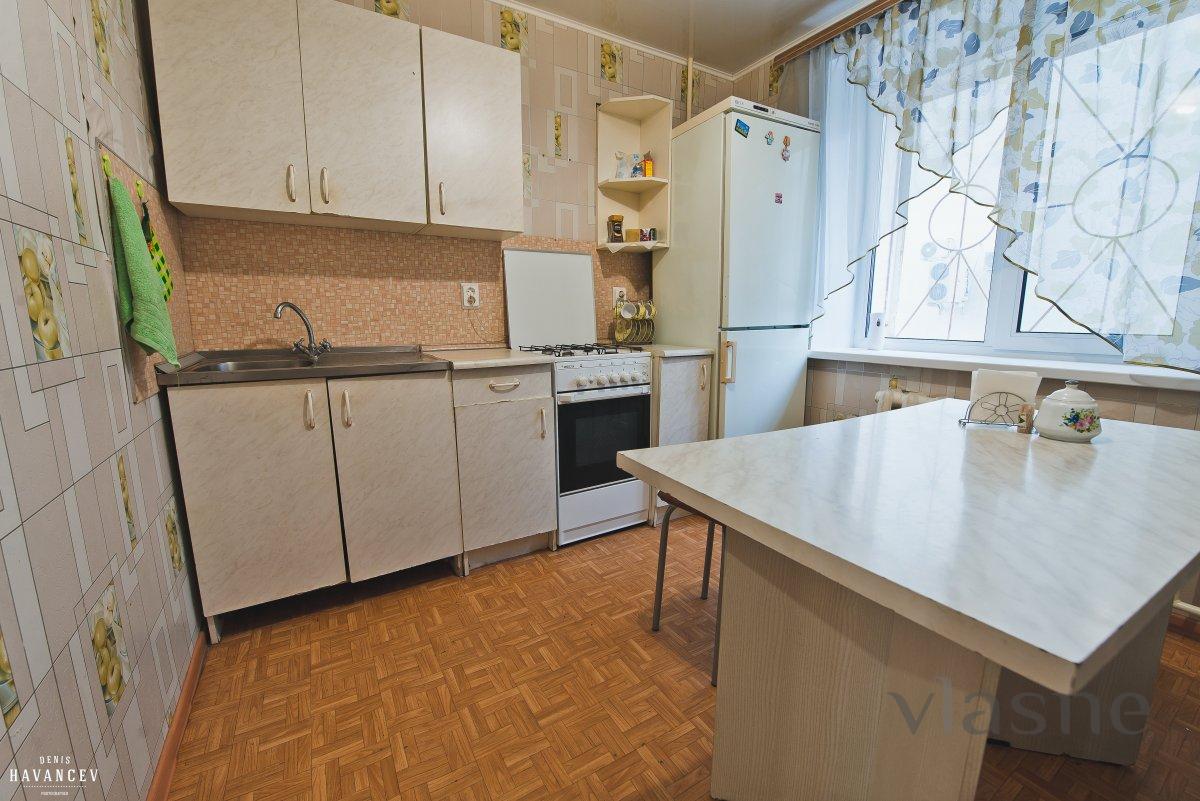 One bedroom apartment located in the city center on the first floor of a 9-storey brick house. Plastic windows overlooking the courtyard. Closed yard. The apartment has everything you need for a comfortable stay: fridge, kettle, hair dryer, gas stove, crockery, TV, high-speed Wi-Fi, cable TV, washing machine.
