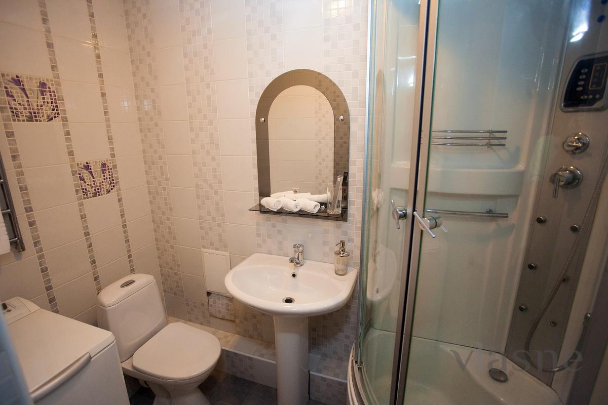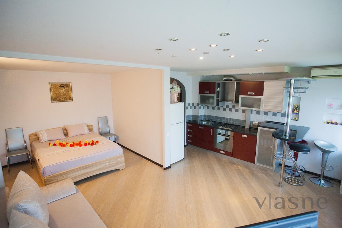 A complete set of home appliances: refrigerator, washing machine, television, microwave, kettle, iron, air-conditioner; double bed and sofa bed (it can accommodate up to 4 people if necessary). There are linens, shower accessories, kitchen accessories, free Wi-Fi and TV, there is a parking space in the secure car park. After each client shall provide a thorough cleaning. NO additional fees, ALL PHOTOS 100% REAL