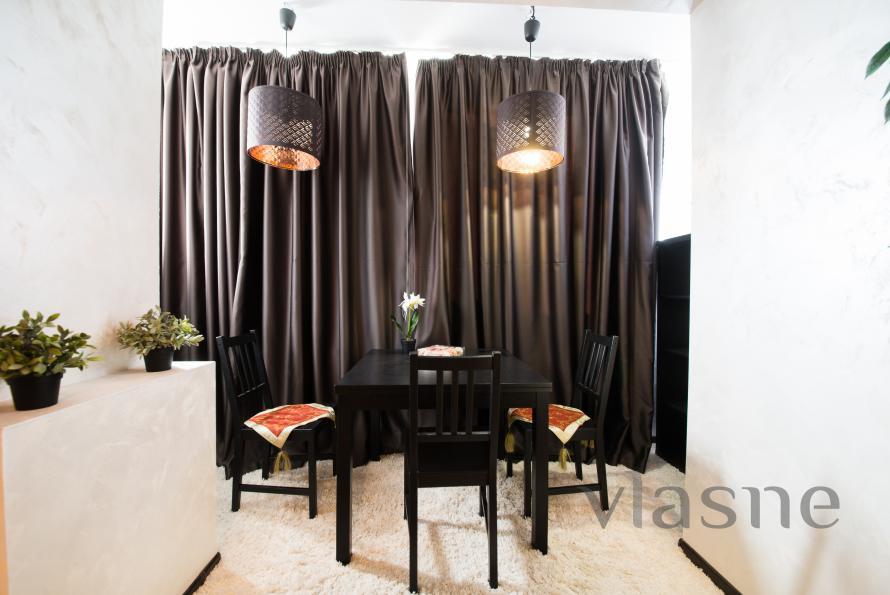 The apartment is in a new house. Separate bedroom and kitchen-dining room with a sofa. Apartment on 2 sides. All new. Perfectly clean. After each client, the apartment is thoroughly cleaned! There is an iron and ironing board. Protected territory. Concierge. Excellent location on one of the central streets of Saratov.