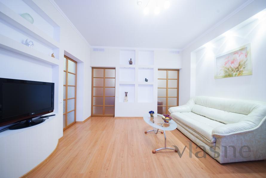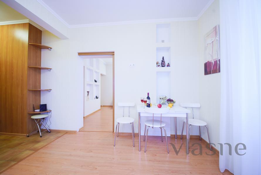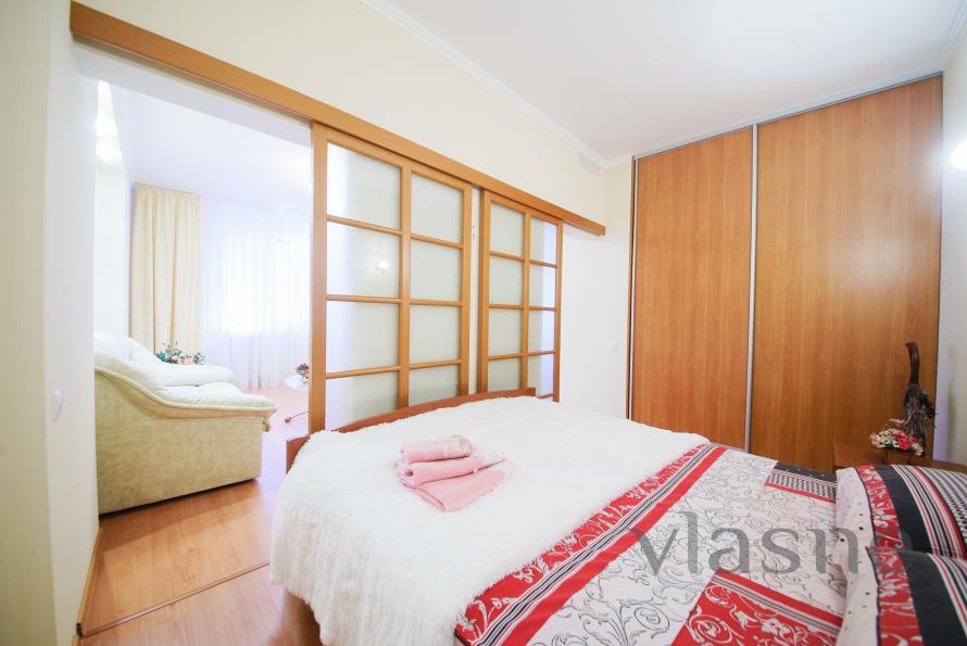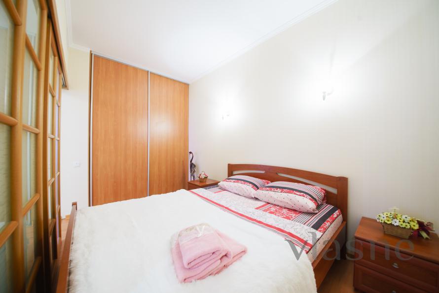 Excellent apartment in the center of Saratov, on the waterfront, close to cafes and restaurants. Stunning views of the Volga. The apartment has a dedicated sleeping area, so it can be considered as a two-bedroom. The apartment has a large bed and a sofa.