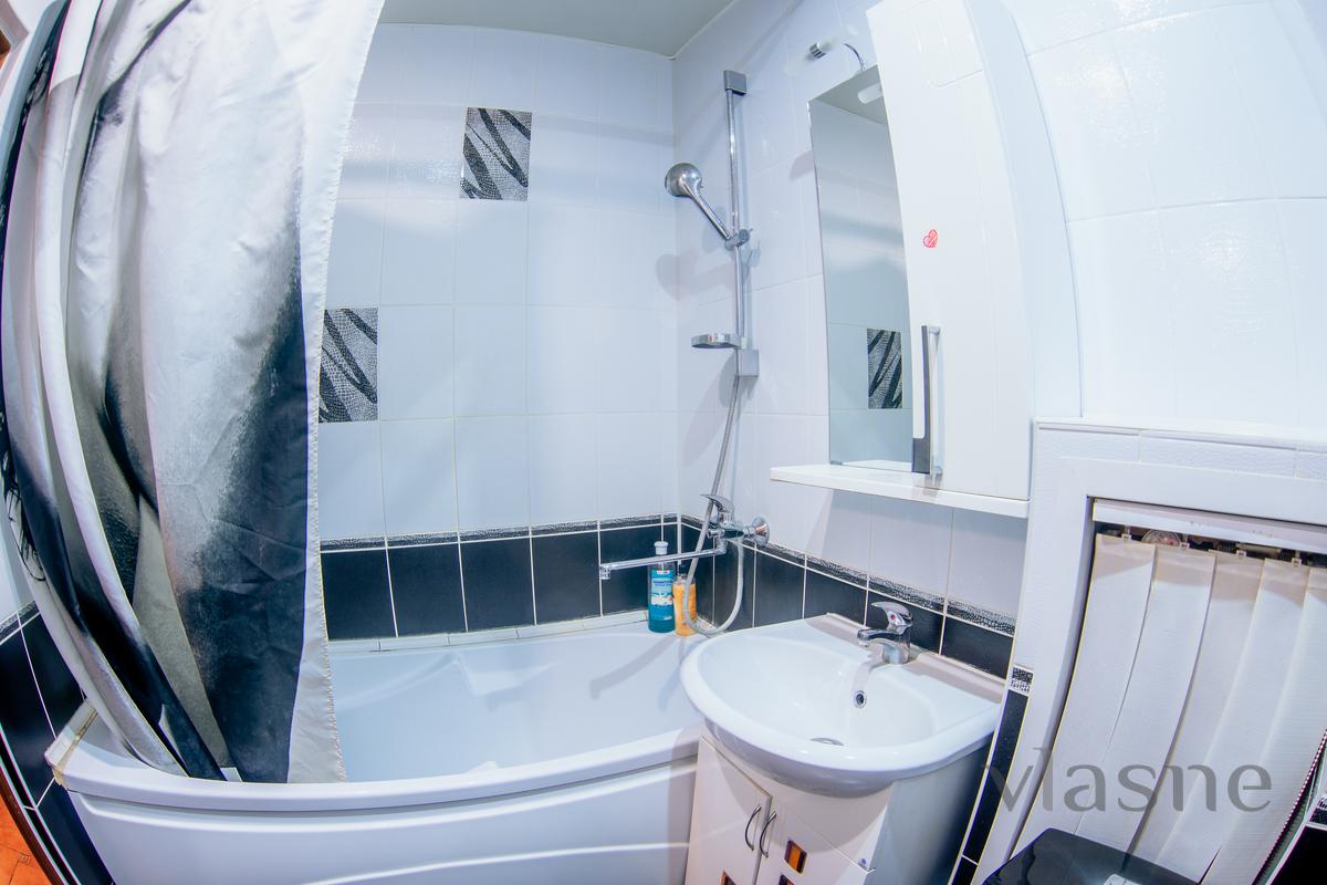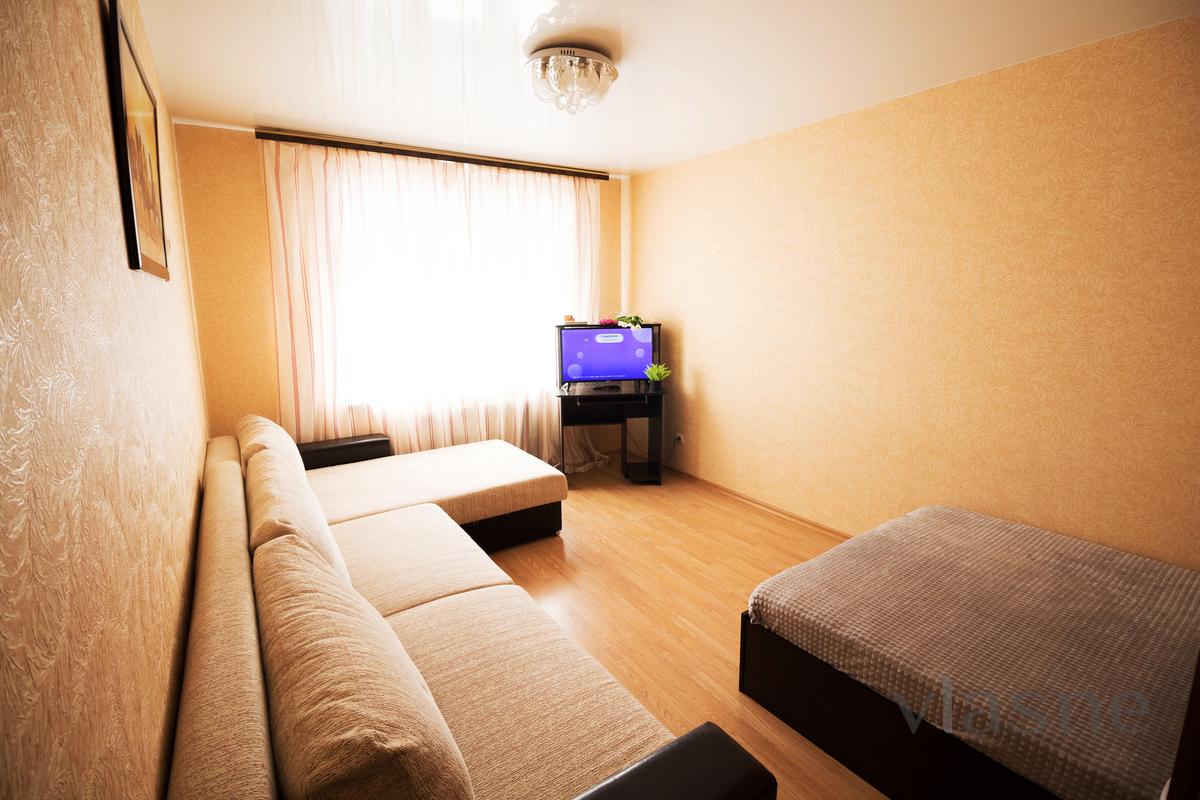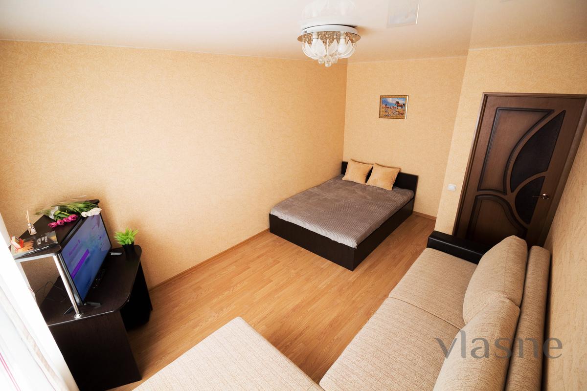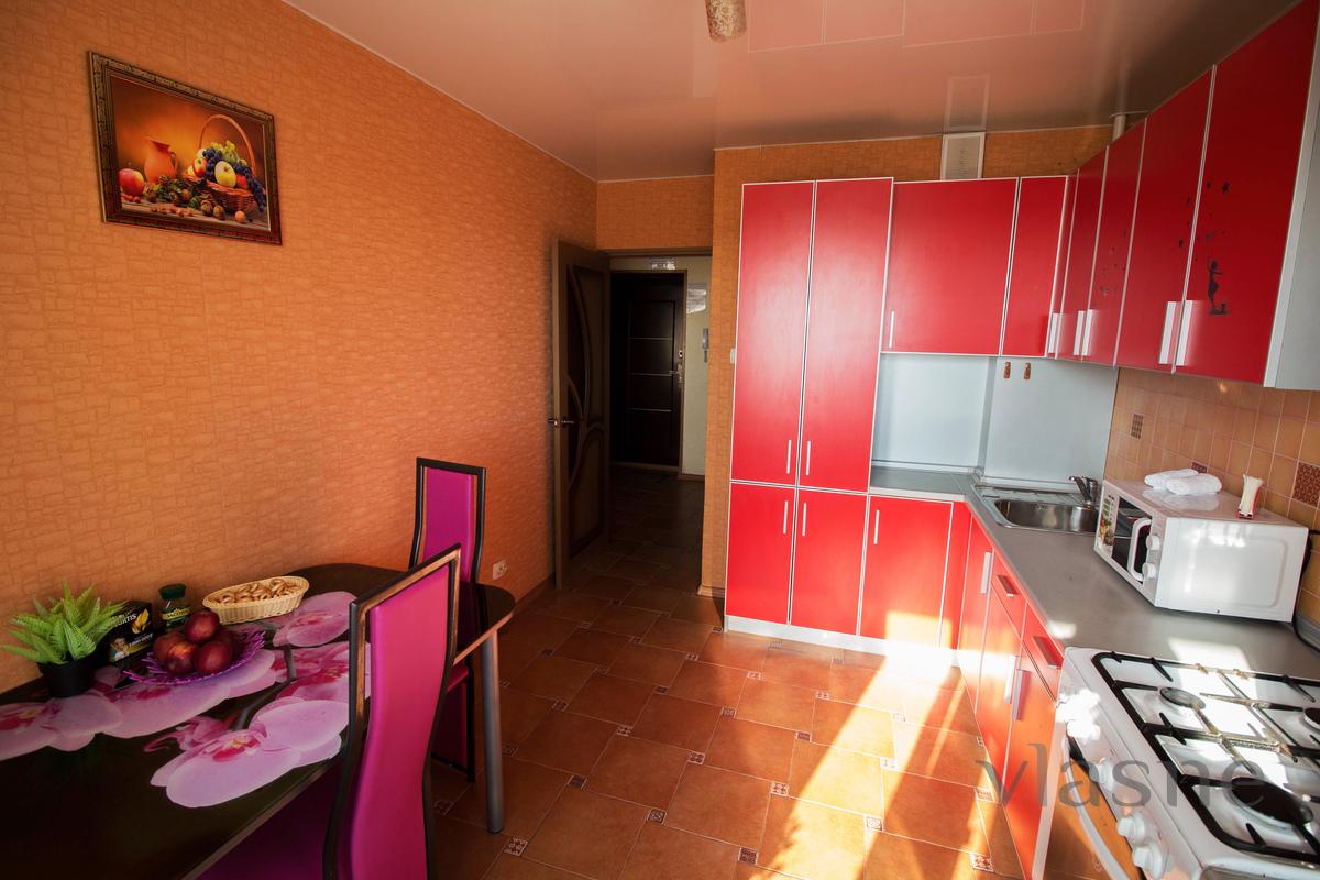 *** Description: Spacious apartment in a new house with individual heating, bathroom combined in a tile. Modern renovation. The apartment has a huge modern 2-sleeping sofa (you can easily accommodate three of us with a child), a dressing room, a TV with remote control, TV (20 channels), free wi-fi internet, a washing machine, an electric kettle, a stove, a refrigerator, a (microwave) microwave bake. *** Cotton linens and towels for each guest. *** Ready to accommodate any number of guests! Apartments in different parts of the city. *** Workers, Tourists, Part-time students, Athletes, Couples, Families, Travelers. *** Checkout time - 12-00 every day! *** Settlement according to the document!