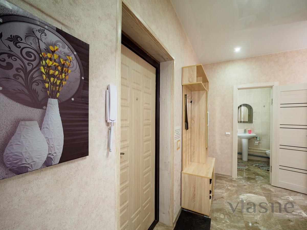 Comfortable, bright, stylish one-room apartment with good European-quality renovation in a new building. Real photographs of apartments, only reliable information. New apartment, bright stylish interior and convenient location. Large double bed, large double sofa, sleeps four. An LCD TV and unlimited Internet will help you spend your leisure time.