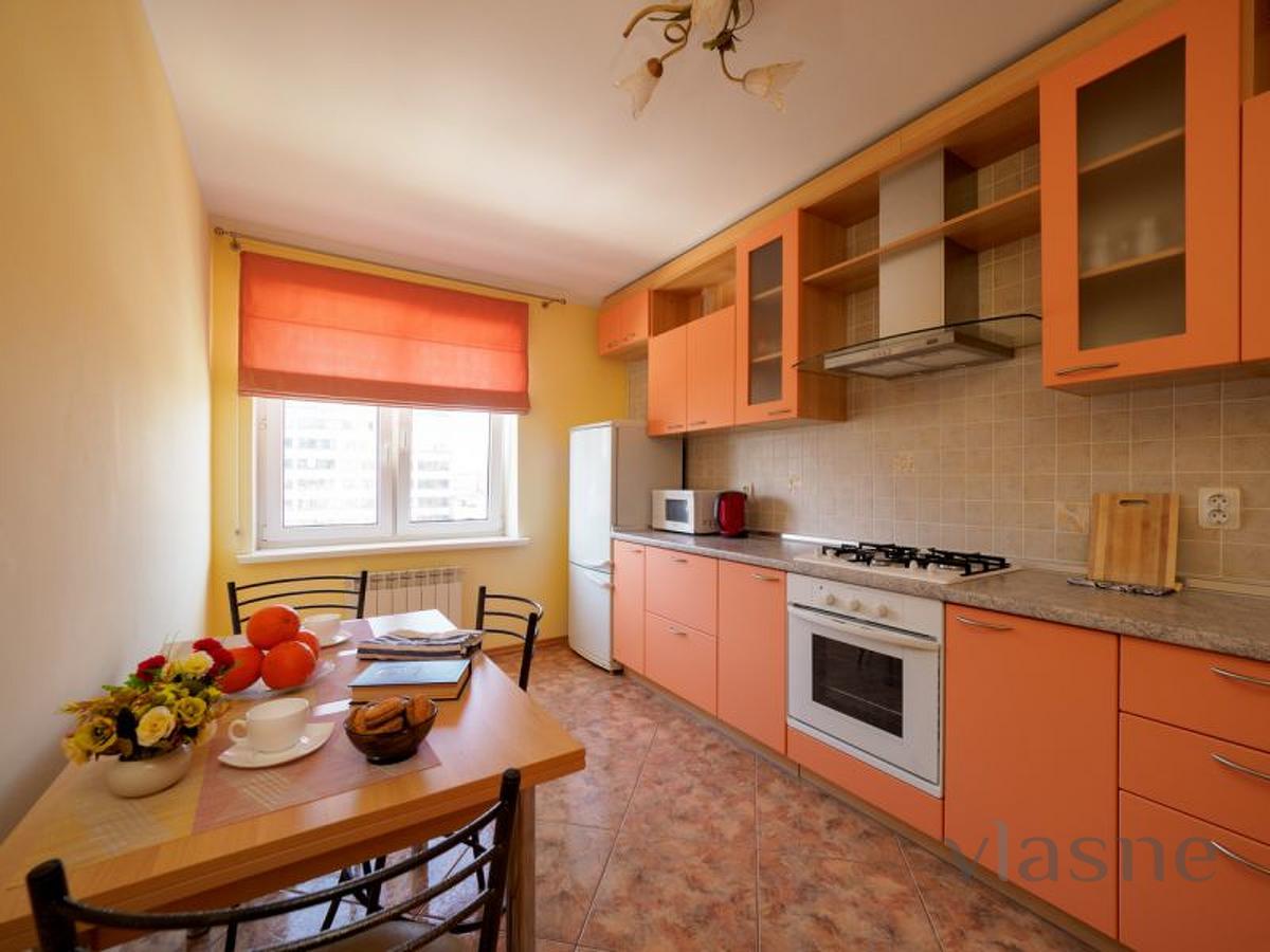 Large, comfortable, stylish two-room apartment with good European-quality renovation in a new building. New apartment, bright stylish interior and convenient location. Two large comfortable modern double beds in each room and two comfortable single beds. 6 sleeping places. An LCD TV and unlimited Internet will help you spend your leisure time.